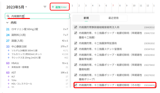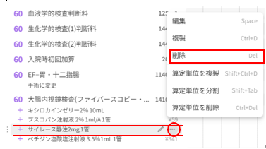 💡 「算定単位を削除」を選択すると、大腸ファイバーの算定ブロック全部が削除されてしまいます!