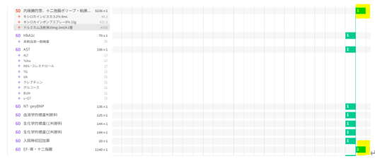 検査と手術が重複しているので、検査のカレンダセルの1を消す