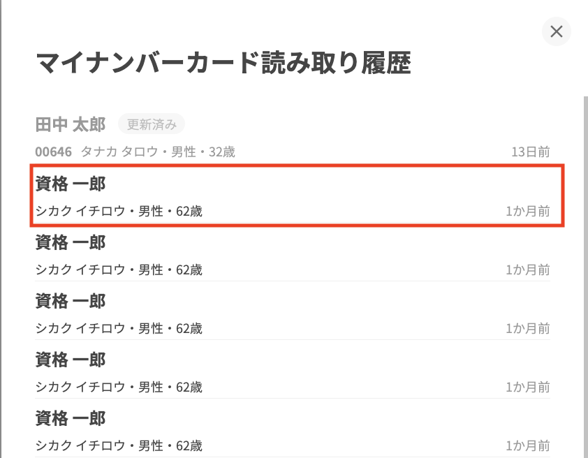 4.マイナンバーカード読み取り履歴より該当患者様を選択します。