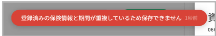 マイナンバーカードから読み取った保険の期間が登録済みの保険の期間と重複している場合に表示されます。 また、マイナンバーカードから読み取った保険と登録済みの保険内容が同様で、開始日が異なる場合も発生します。