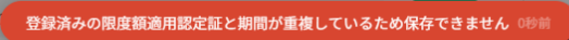「多数該当」「長期入院該当」に該当する際に、過去分に影響が無いように期間を分けてご登録いただいた際に本警告が表示されます。