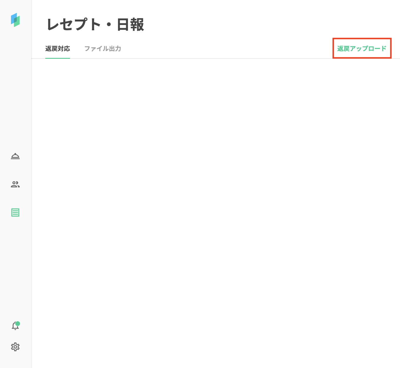 ② 下画像内、赤枠で囲んでいる「返戻アップロード」をクリックし、 「RECEIPTC.HEN」「RECEIPTC.SAH」をアップロードします。