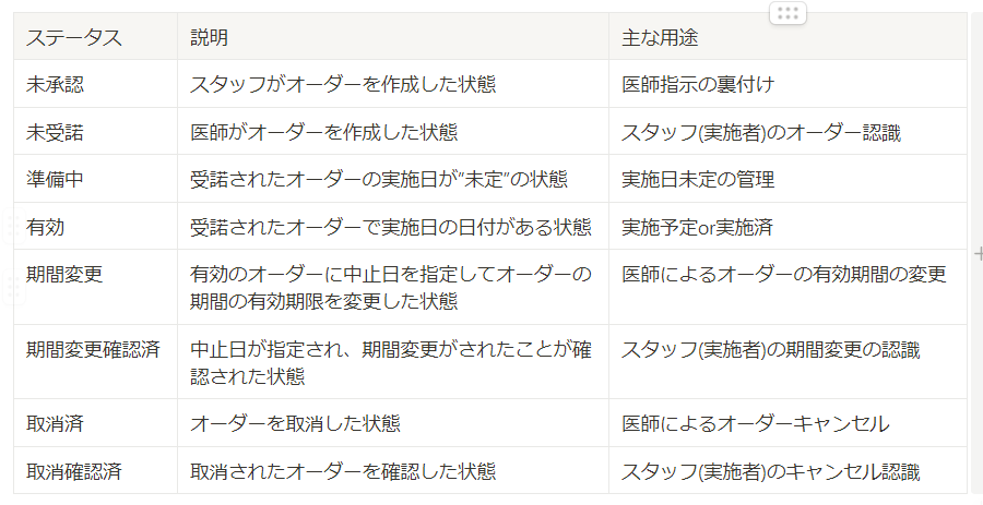 医師が作成したオーダーは「未受諾」ステータスとして登録される