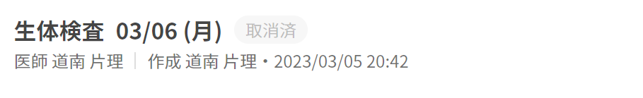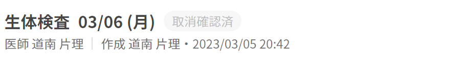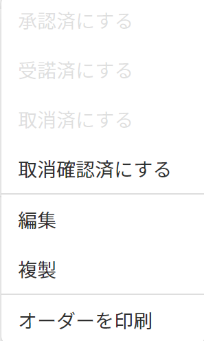 「取消済」ステータスのオーダーは、医師及びスタッフが”取消確認済にする”を選択すると「取消確認済」になる