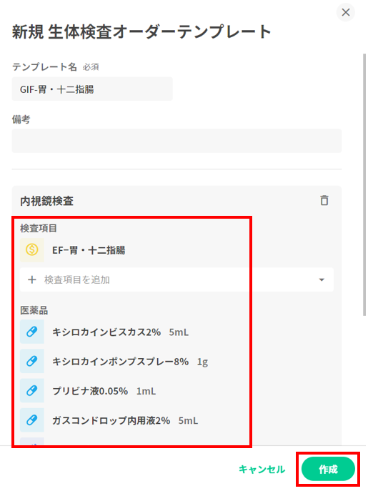 ※入力したオーダーの内容をもとに、テンプレートの作成も可能となっています。