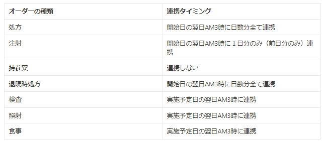 ※実施管理導入以後は、注射・検査・照射について実施済みのオーダーのみ連携予定。