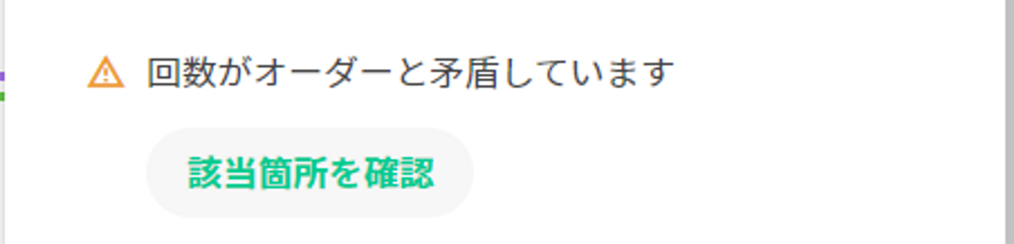オーダーを取り込む際にコスカレ上に既に同じ内容のオーダーがあった場合:合算すべきか上書きすべきかの判断ができない為、2つ目のオーダーは取り込まれず「回数がオーダーと矛盾しています」と表示されます。