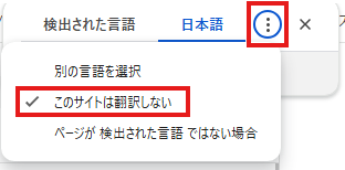 縦の「…」をクリックし、「このサイトは翻訳しない」を選択します