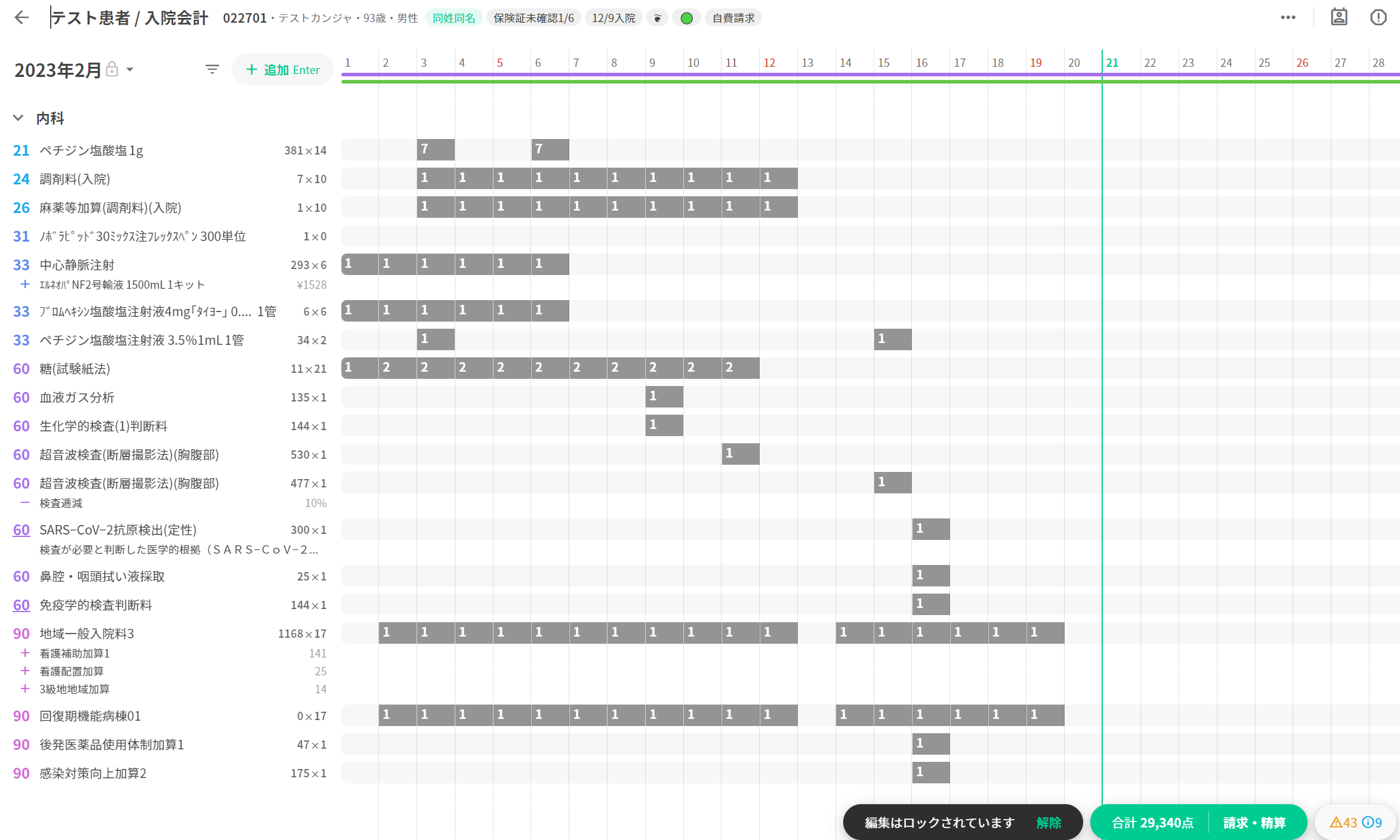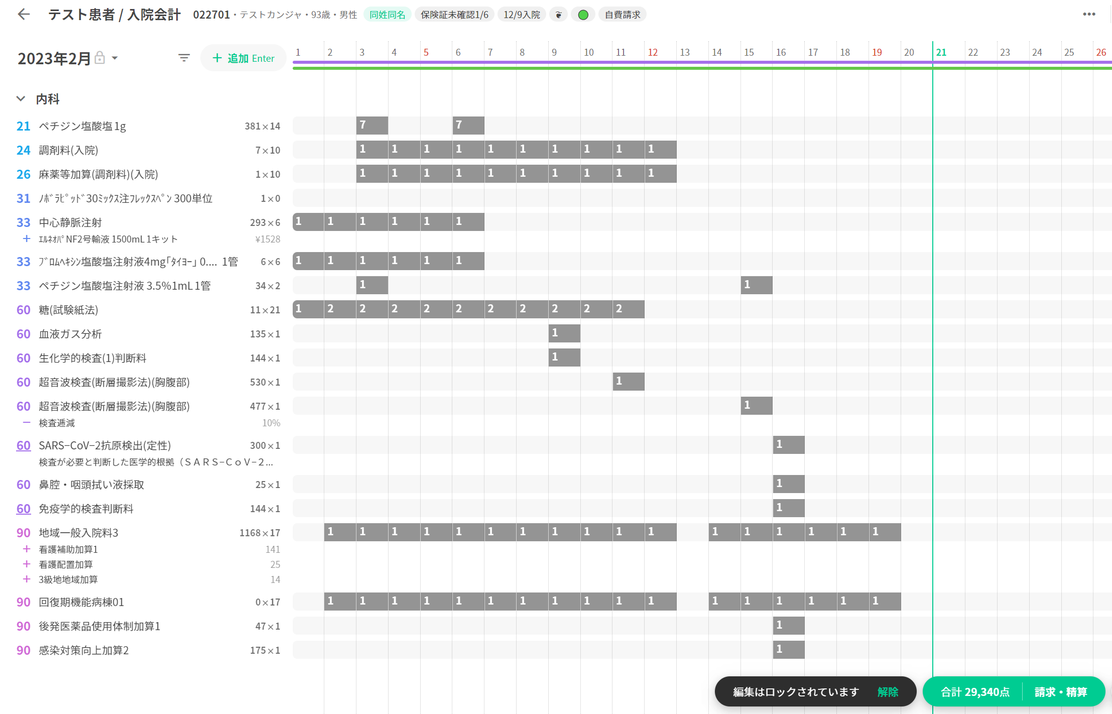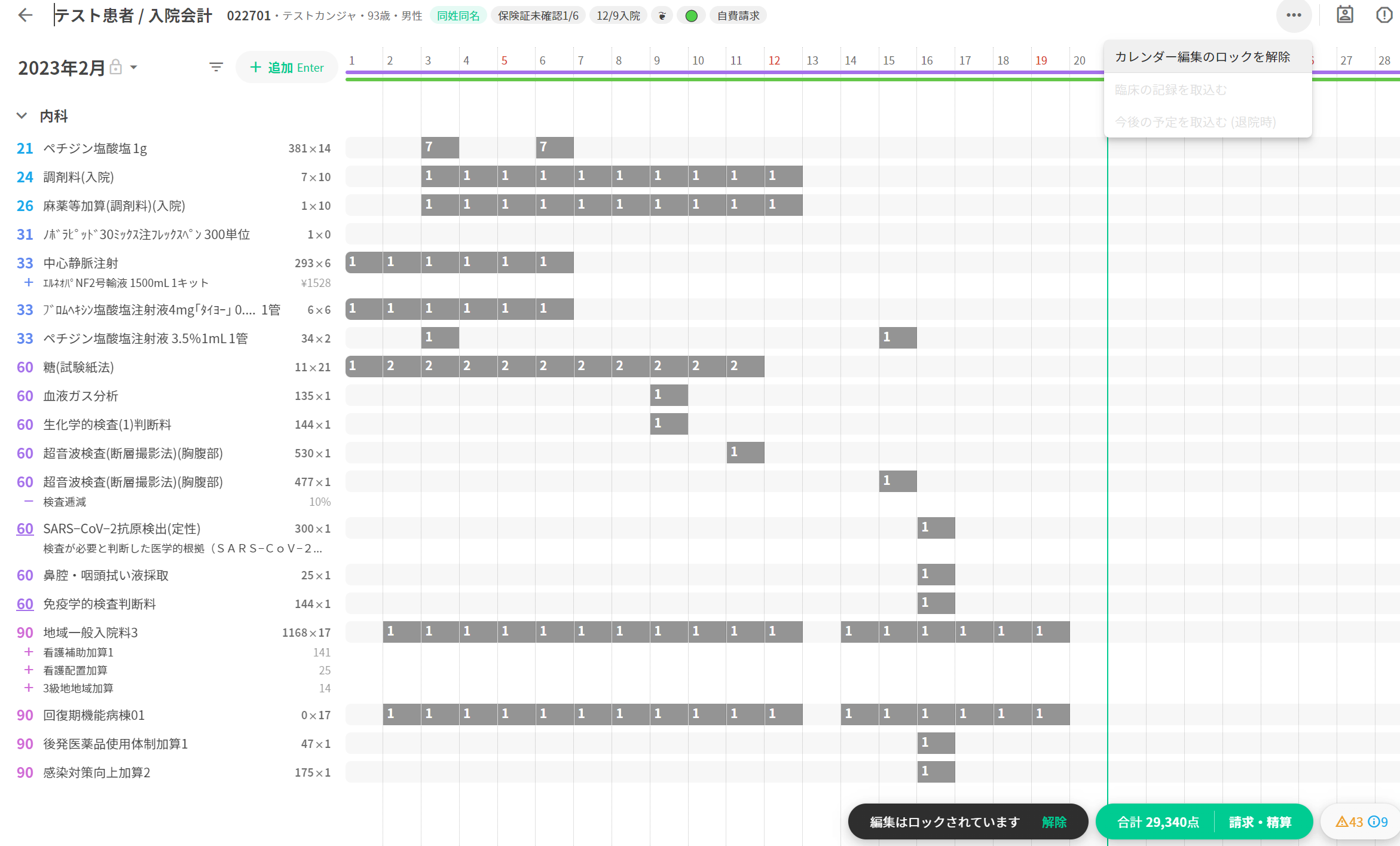 ※コスカレがロックされている場合は、オーダーのコスト連携は行われませんので、ご留意ください(ロックされたコスカレは請求月の会計が締まり、これ以上の臨床記録が取り込まれる想定が無い為)。ロックによりコスト連携されなかったオーダーについては問題報告として通知致します。