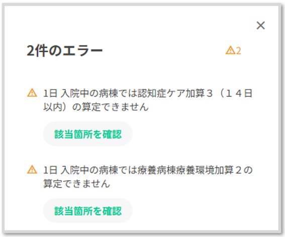 自動算定される入院料加算を削除後、コスカレを手動取り込みすると、削除した入院料加算が再表示されます。