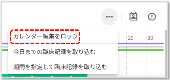 三点リーダーから「カレンダー編集をロック」を選択し、コスカレをロックします。