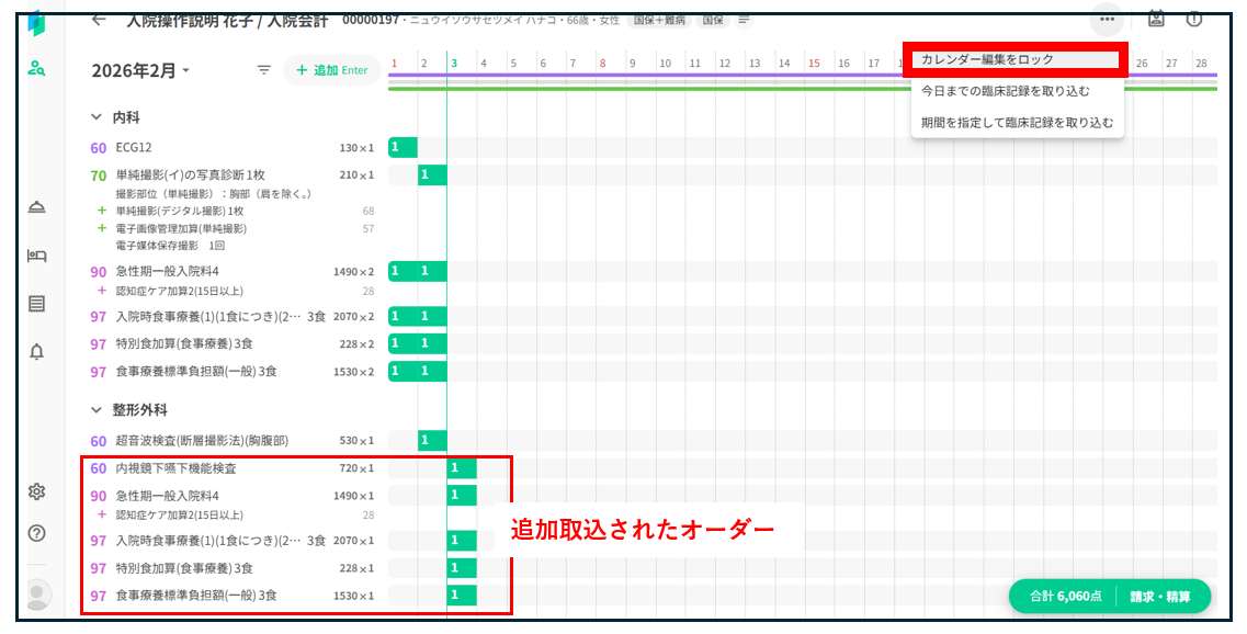 コストカレンダー(コスカレ)をロックすると、ロック後に追加・変更されたオーダーは自動で反映されません。反映させたい場合は、ロック解除 → 再取り込み(または手入力)→ 再度ロックの操作が必要です。