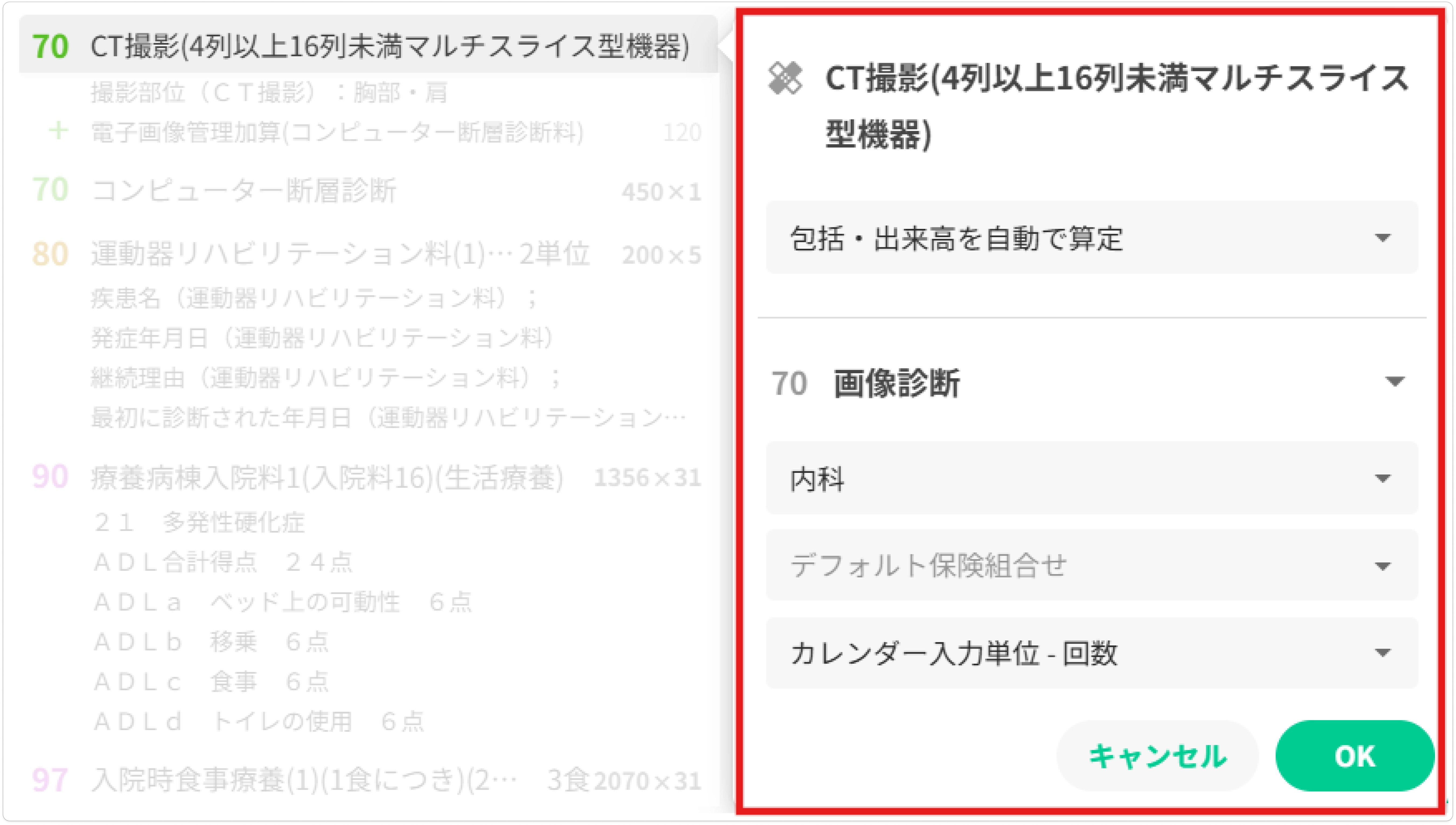 初期状態ではこちらの[包括・出来高を自動で算定]が選択されています