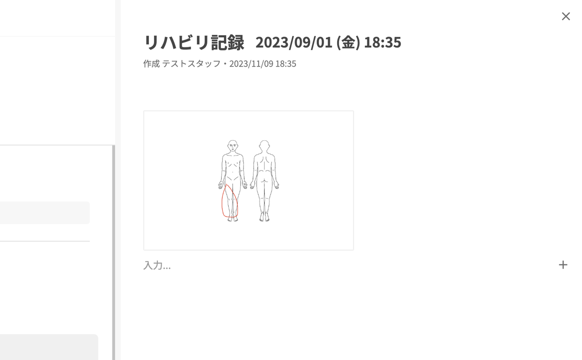 リハビリ記録では、リハビリの実施箇所をわかりやすく記録できます。