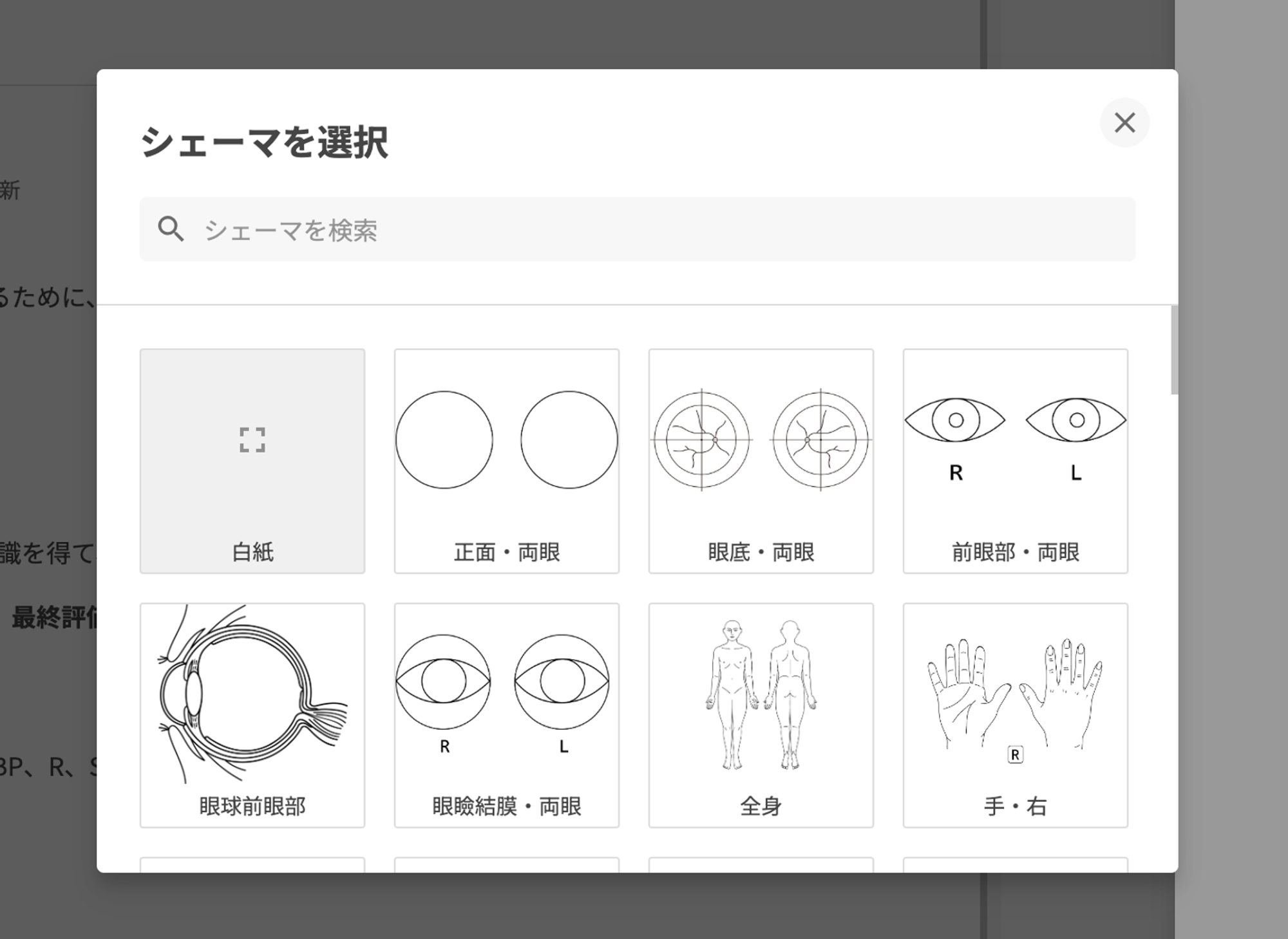 外来カルテに加え、入院記録、看護計画、看護記録、リハビリ記録、その他の記録でもシェーマの挿入・画像のアノテーションが可能です。