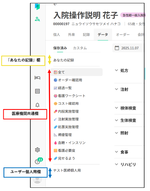 医療機関共通欄 | 医療機関内の全ユーザーの記録・オーダー等 | 患者全体の記録を一覧で確認したいとき |