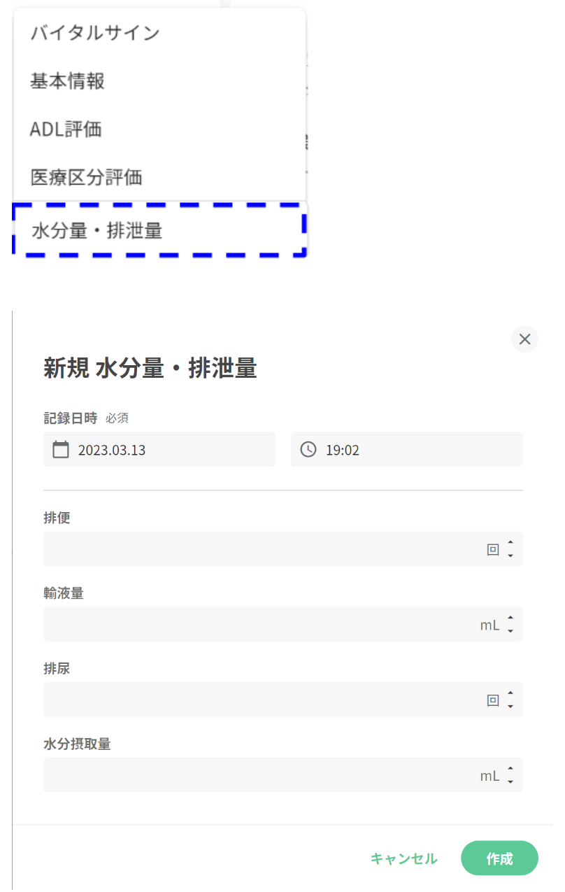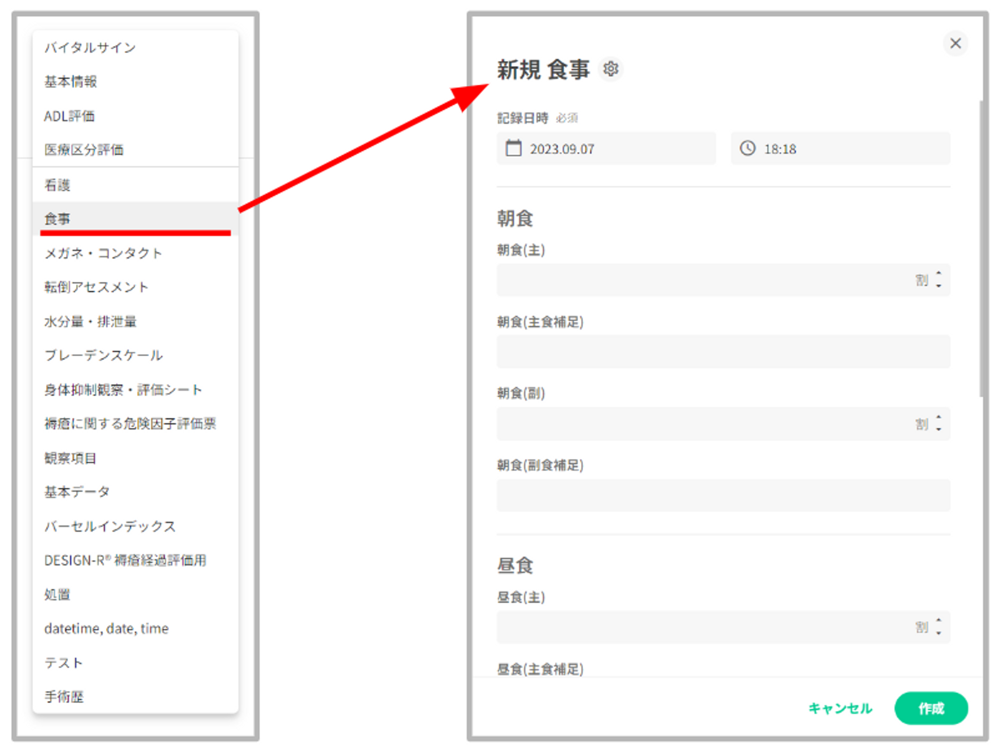 任意の追加メニューを選択すると、従来通り記録作成画面が展開されます。