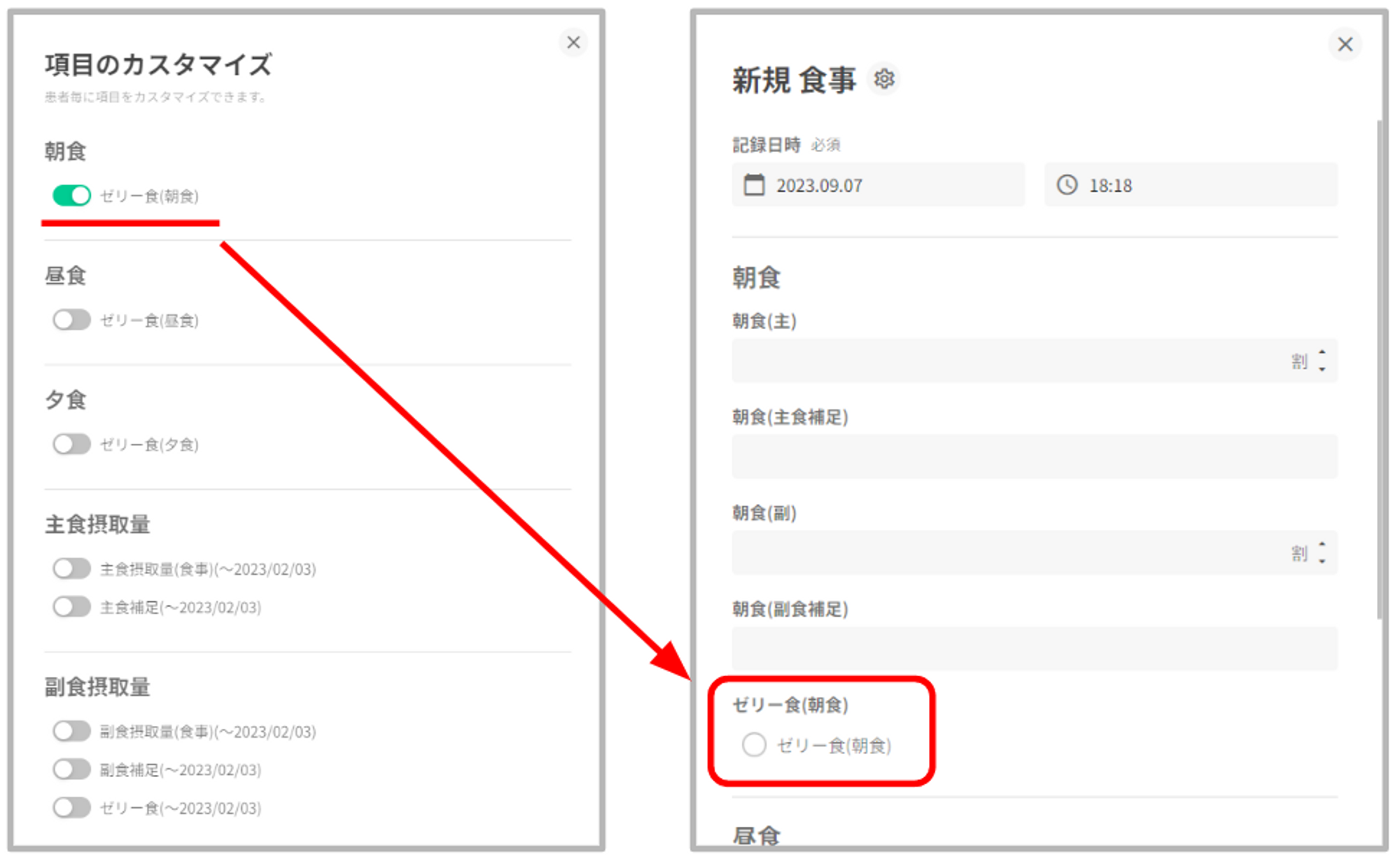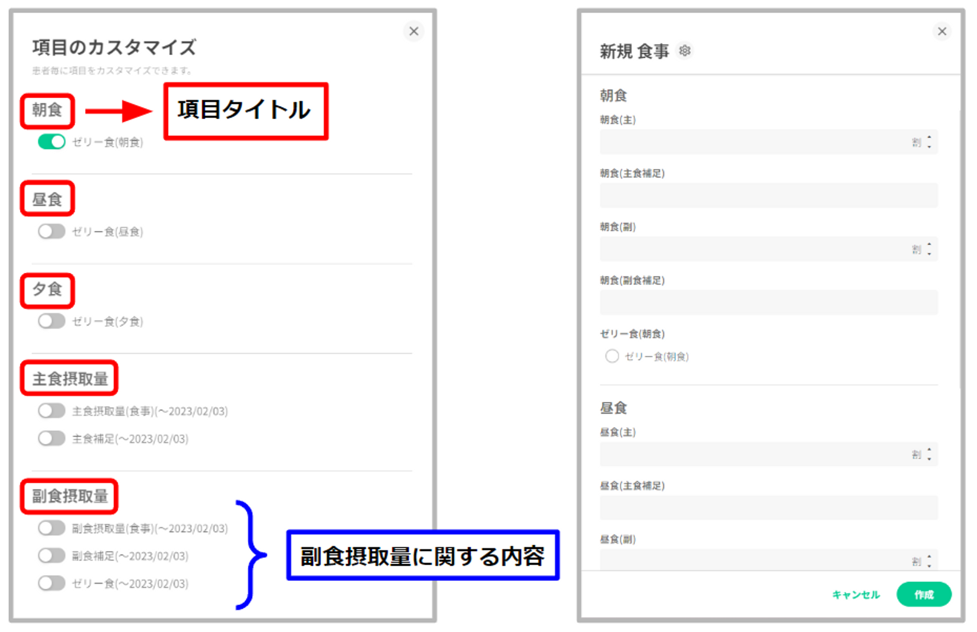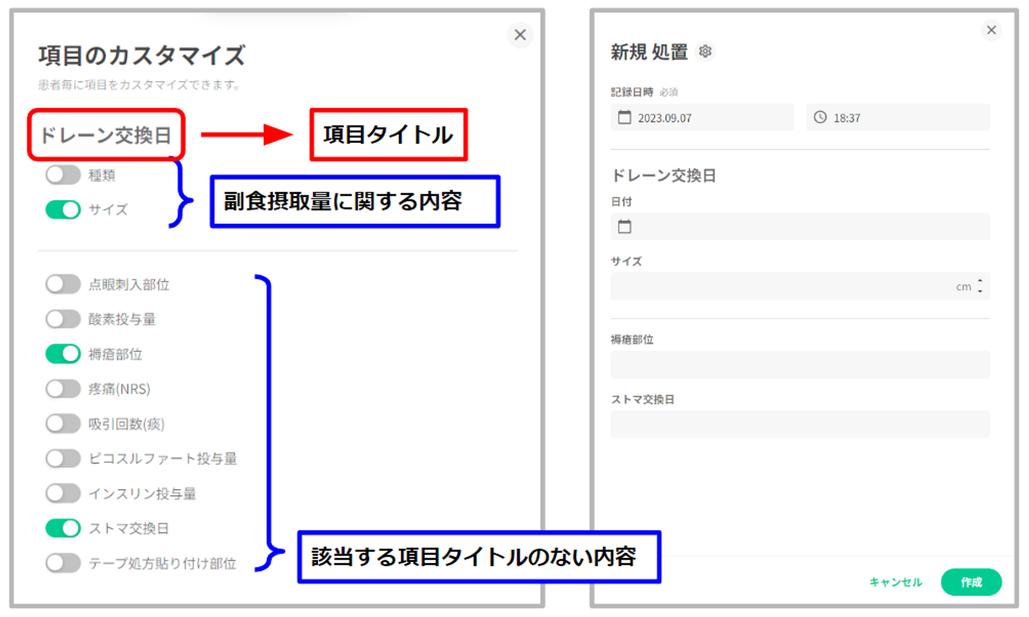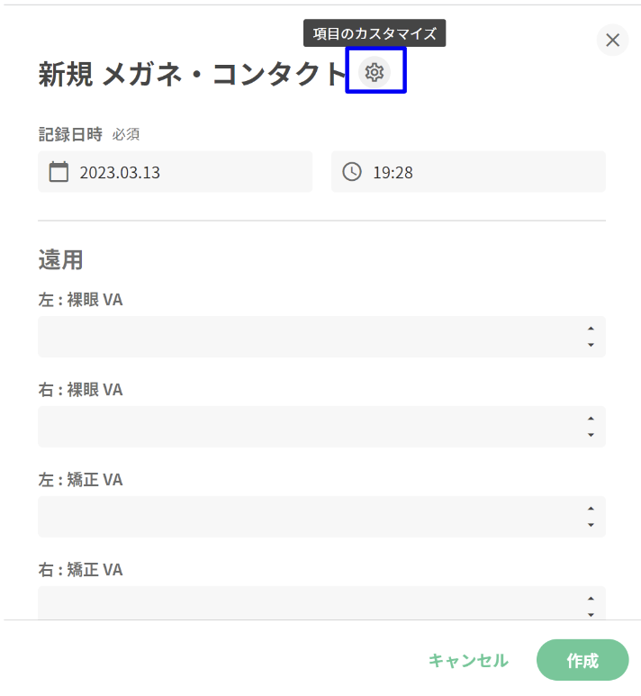 「+」ボタンを押下すると表示している記録項目の作成画面が展開されます。