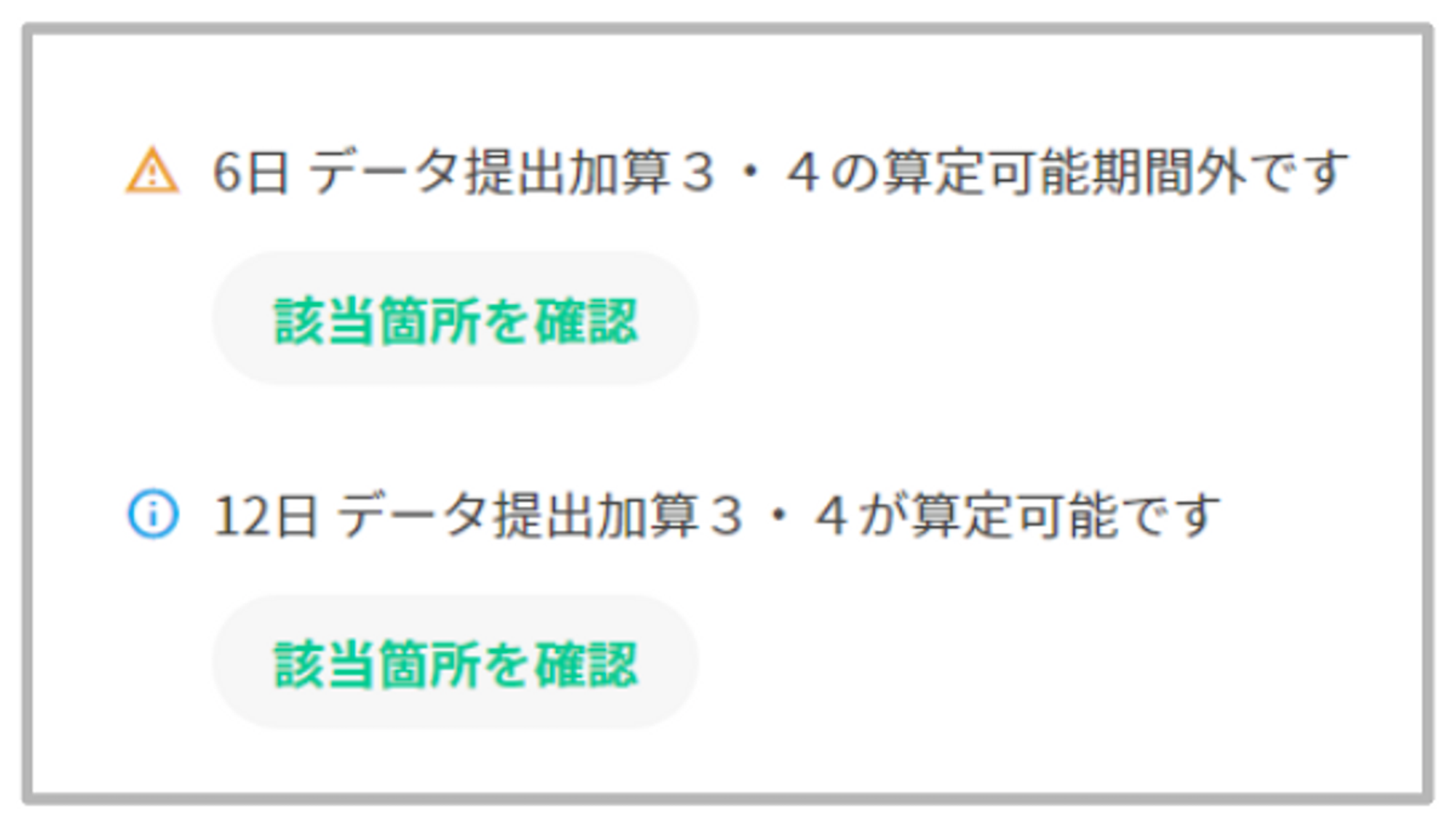 算定できない日に入力されている場合は、警告メッセージが表示されます。