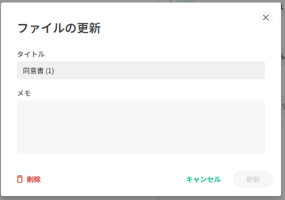 アップロードしたファイルは、タイトルやメモといった説明を編集することができます。