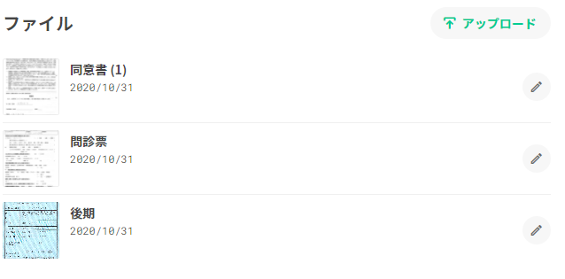 「ファイル」タブでは、患者のアップロードされた画像ファイルがサムネイル(縮小表示)で一覧されます。