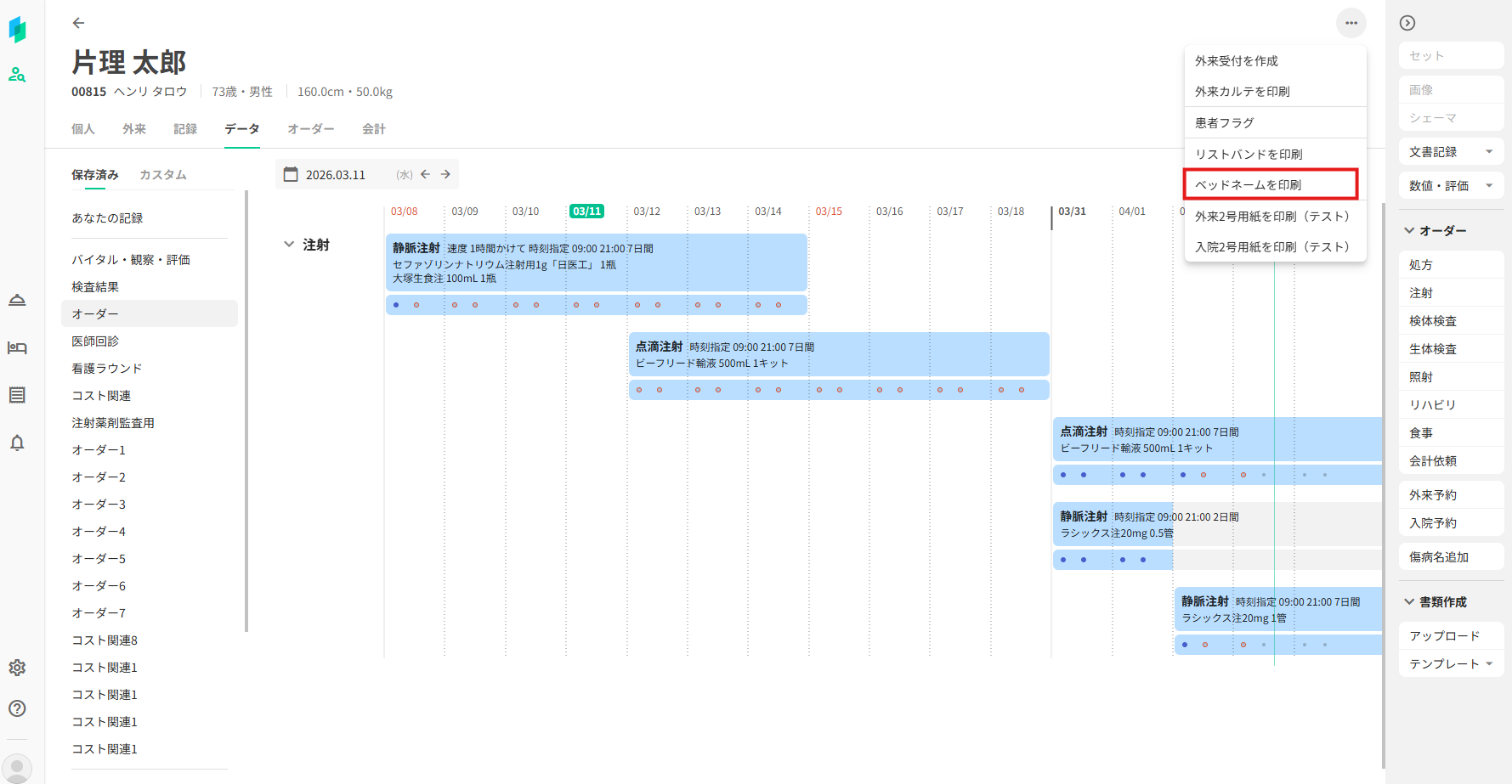 1.ベットネームを印刷したい患者の詳細画面を開きます。
