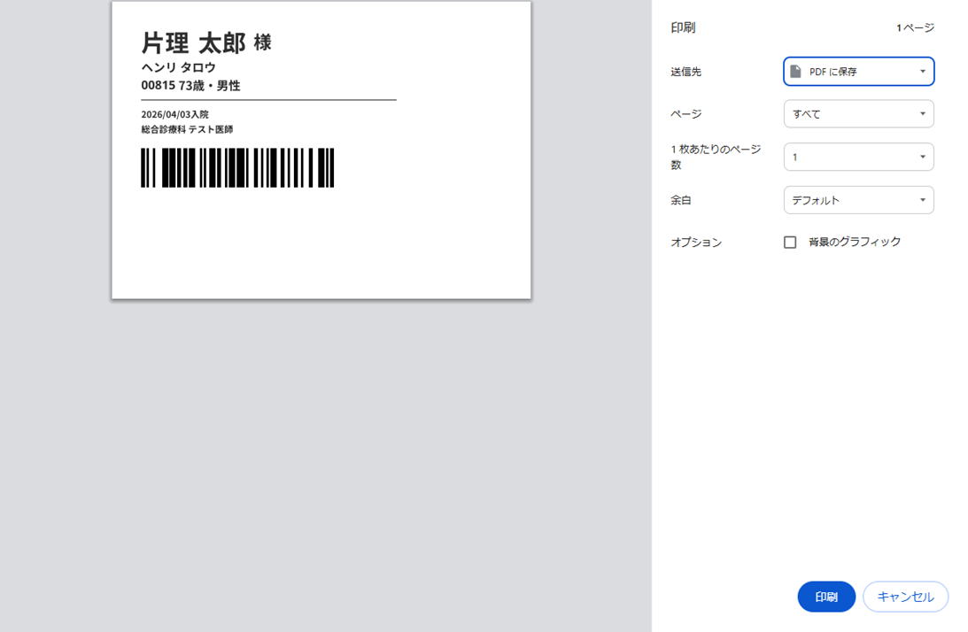 患者ラベルが印刷されます。