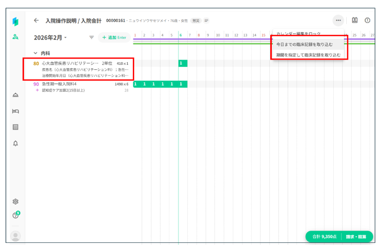 コスカレのメニューから「臨床記録を取込む」を押下します