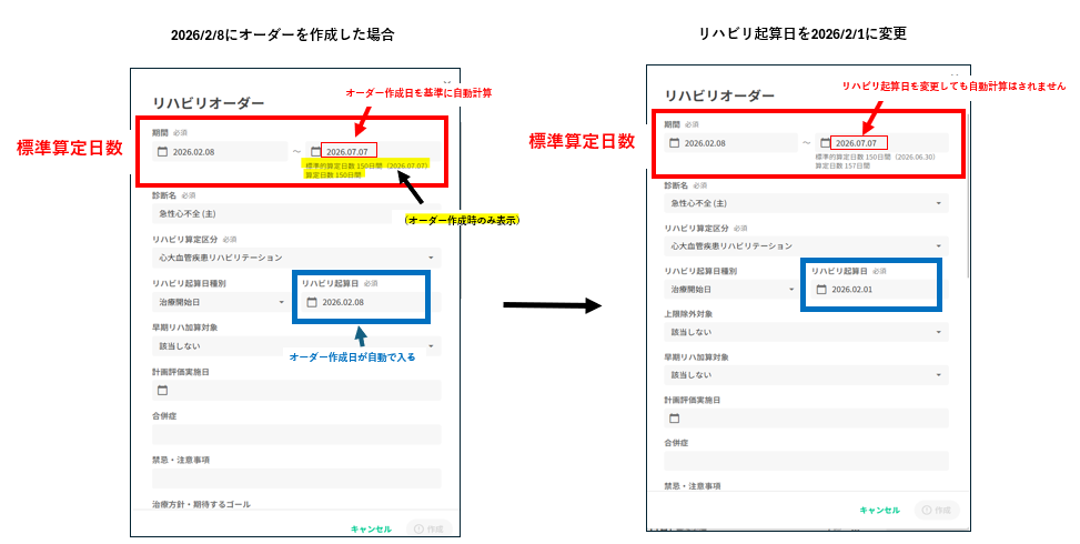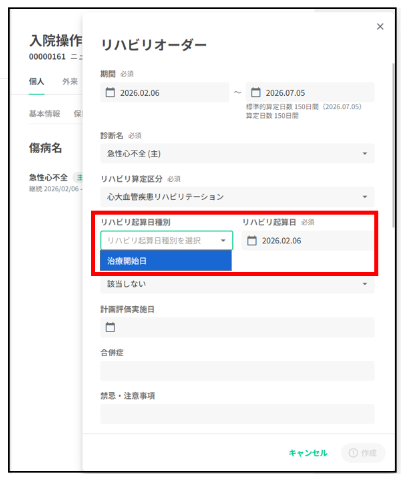※起算日種別は疾患別リハビリテーションの種類に応じて適切なものが表示されます