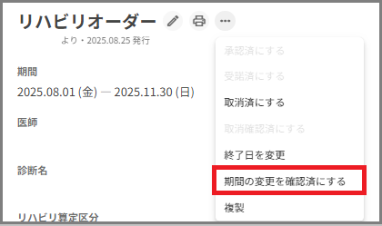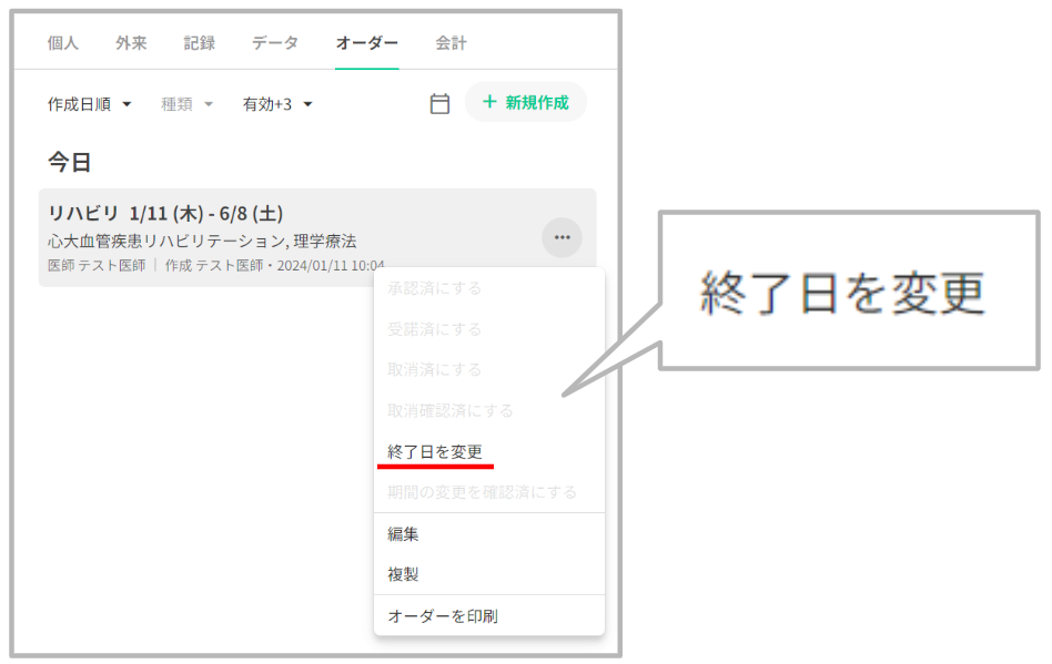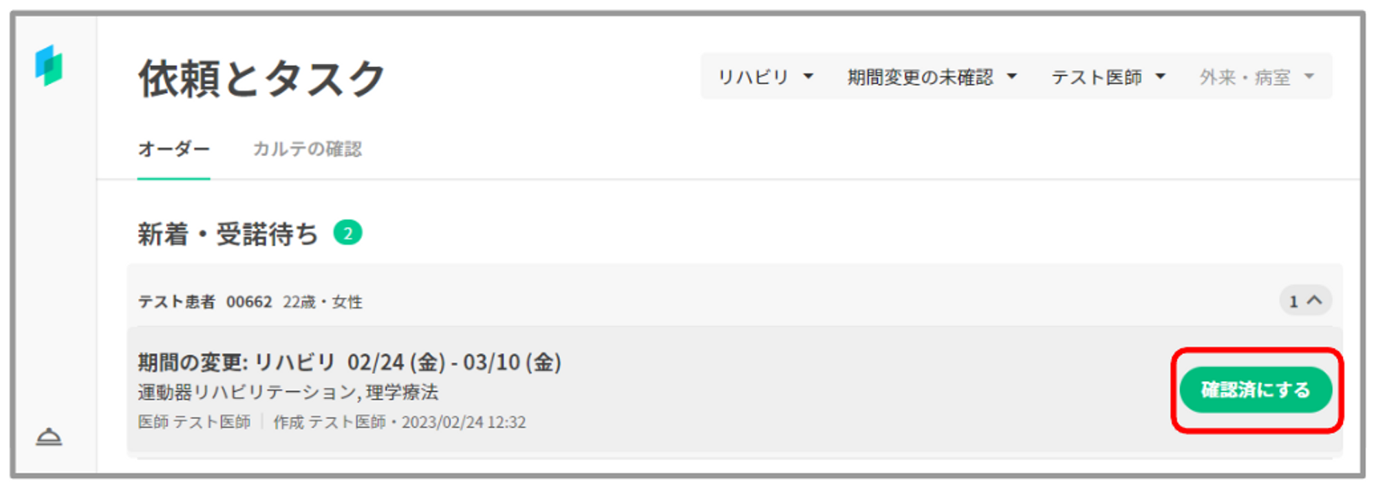 変更を確認する際は、オーダー画面のメニューまたは依頼画面のいずれからでも可能です。