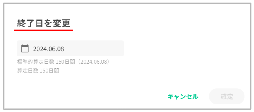「終了日を変更」を押下すると、終了日の設定画面が表示されます。任意の終了日を設定してください。