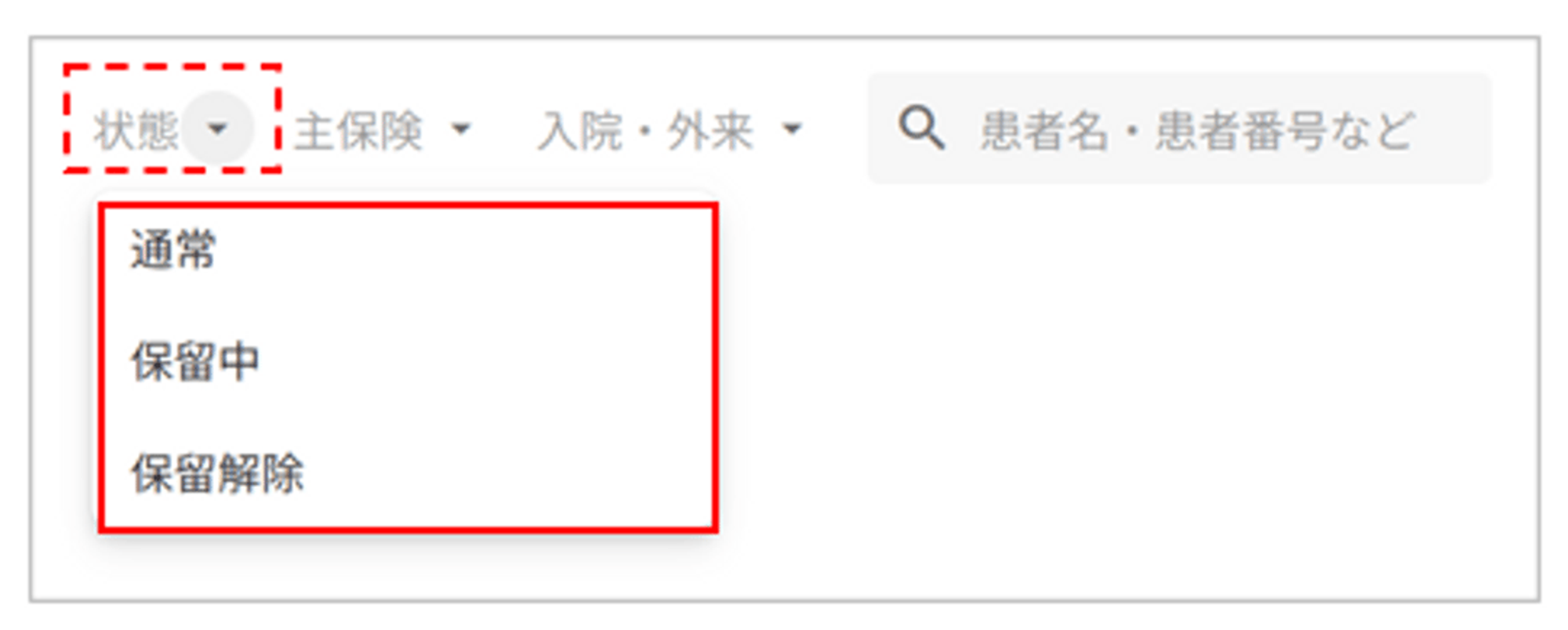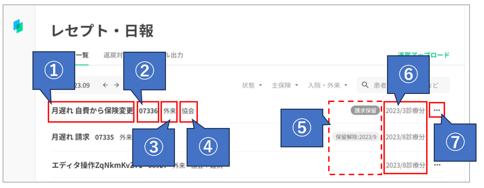 ※「請求保留」「保留解除:YYYY/MM」の表示がないデータはどちらの登録も行っていない通常のレセプトデータです。