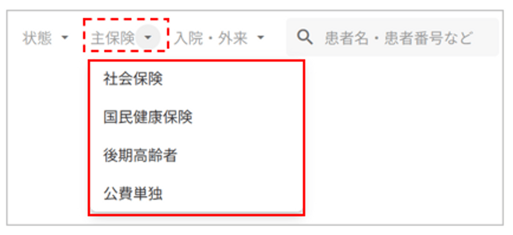 【主保険】レセプトデータに使用している保険毎に抽出することが可能です。