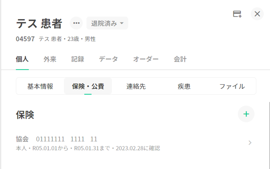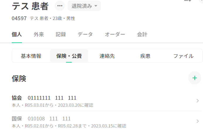 例)患者番号04597、診療日2023/03/15、保険:国保