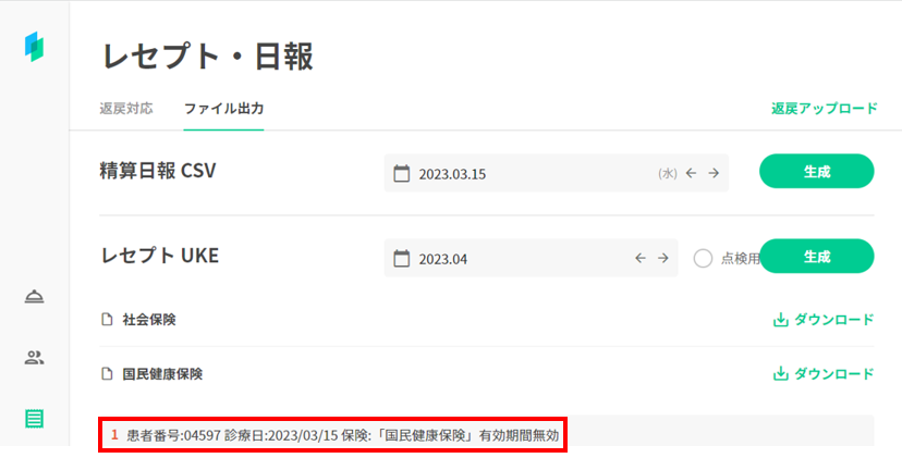 (5)レセプトUKEを生成し、「有効期間無効」エラーが消えていることを確認します。