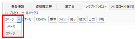 レセプトが2ページ以上にわたる場合、ページ切り替えを行います。