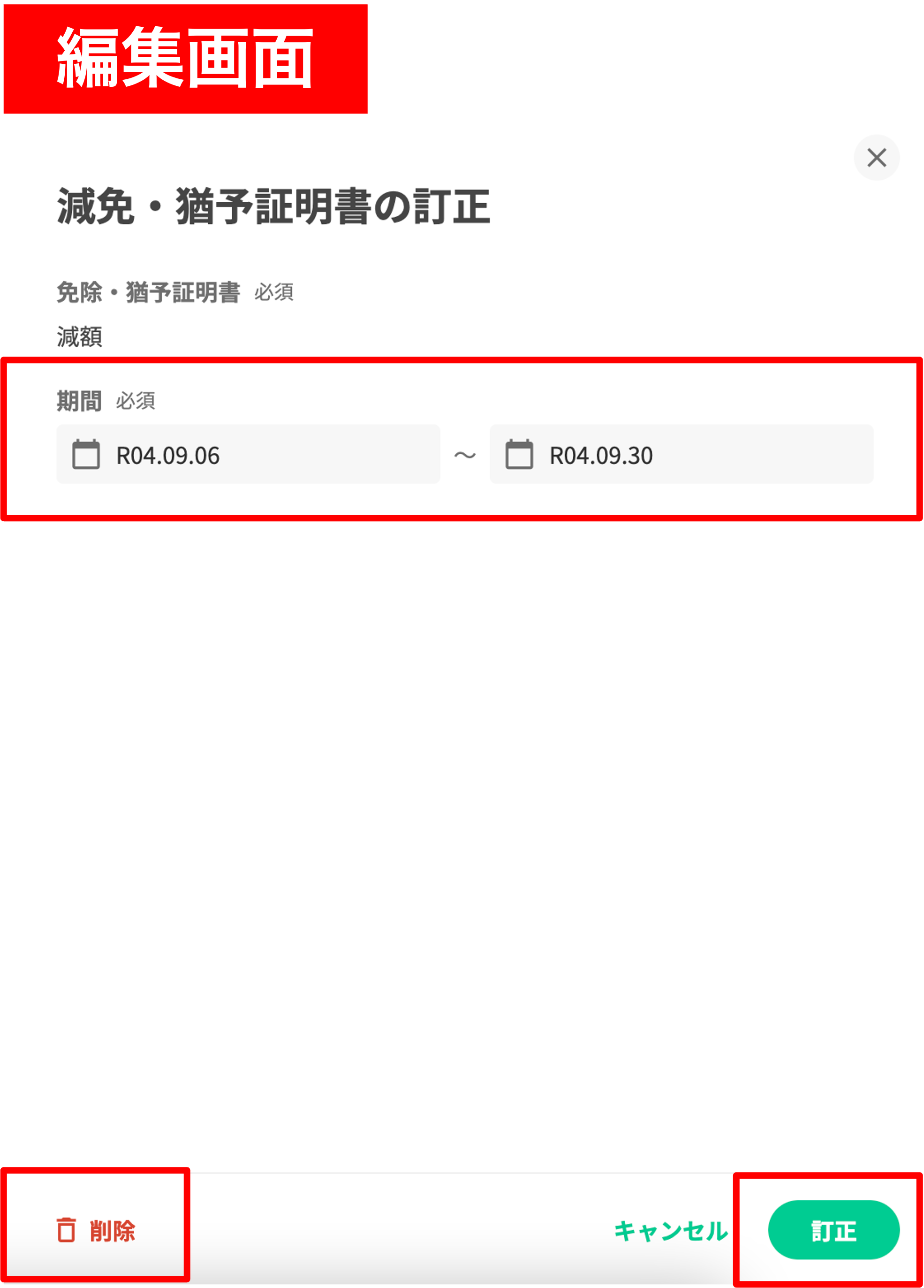※修正可能範囲は有効期間の部分のみとなりますので、ご注意ください。