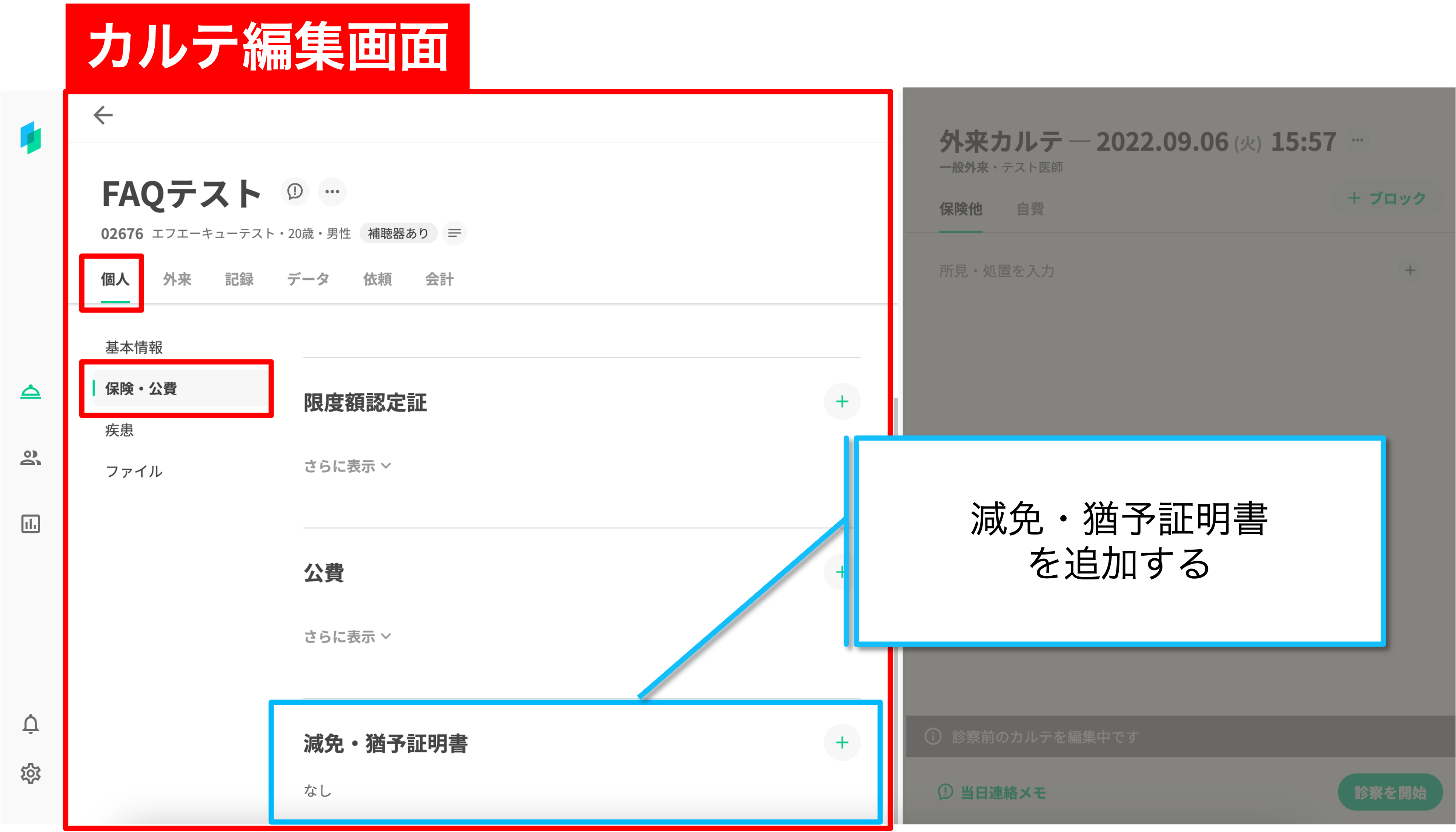 減免区分が「免除」「支払猶予」で登録されている患者については、その期間中の会計では一部負担金が0円で計算されます。