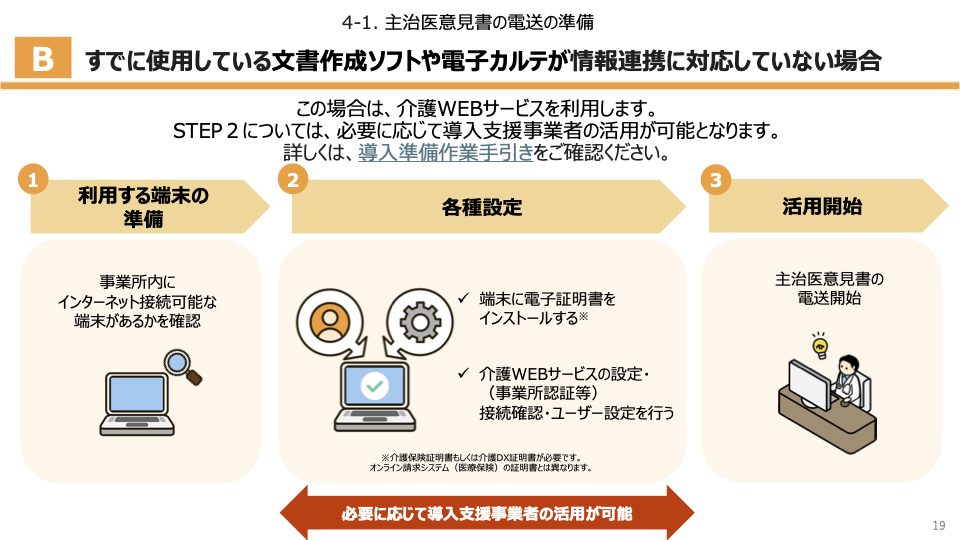 電子的送信が必要な場合は、介護情報基盤ポータル にて案内されている方法をご確認ください。