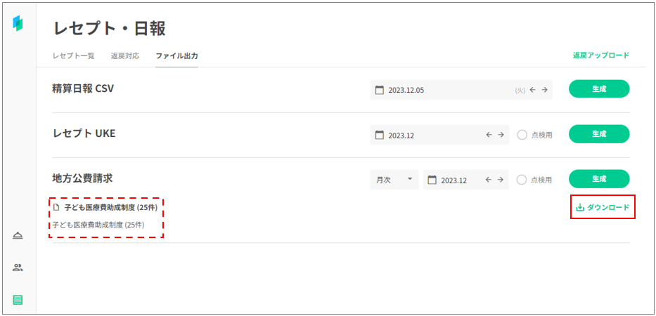 3.請求様式に対応したCSVファイルが出力されますので、「ダウンロード」を押下し、出力ファイルをダウンロードしてください。