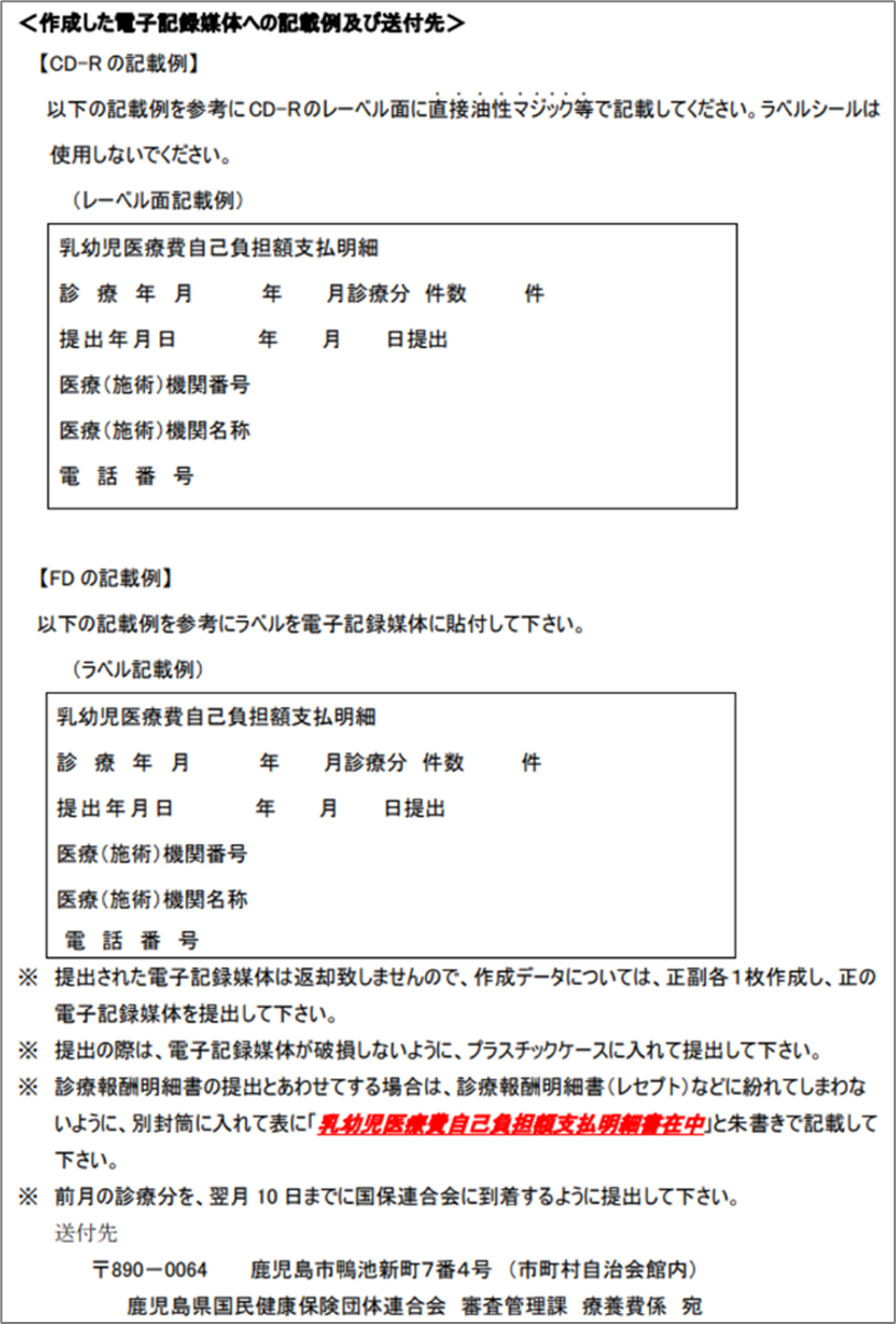 出力したCSVはCD-RまたはFDに記録し、国保連合会にご提出をお願いいたします。