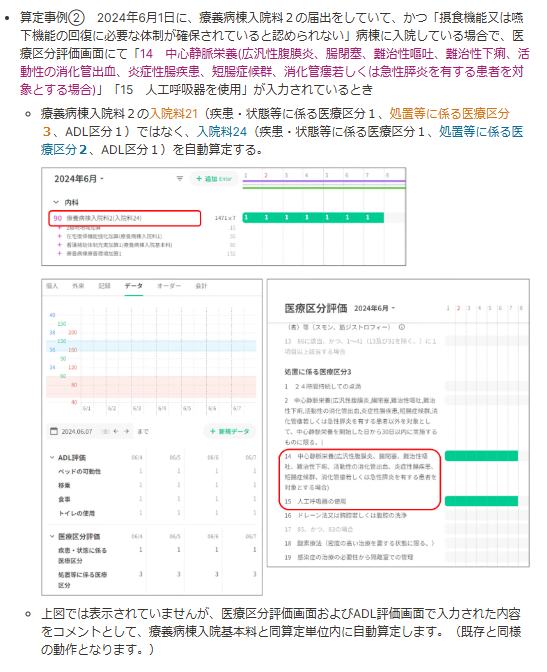 ご案内文書に記載されている情報は、医療機関様で表示が異なる場合がありますので、ご了承いただきたく存じます。「中心静脈栄養を実施している状態にある者の摂食機能又は嚥下機能の回復に必要な体制が確保されていると認められない場合」の自動算定に対応