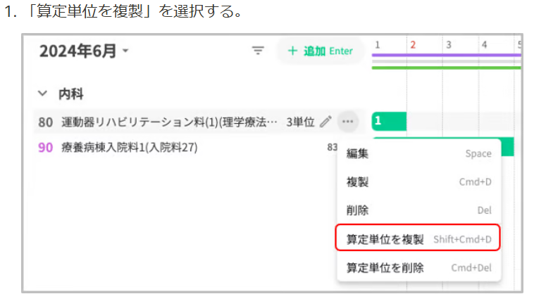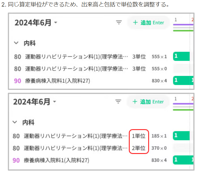例) 算定単位を複製して単位数を調整する場合