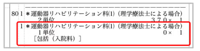点検用レセプト:「入院料に包括」を指定した算定単位は包括分として点検用レセプトに出力されます