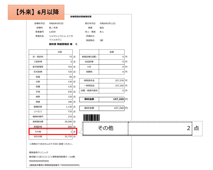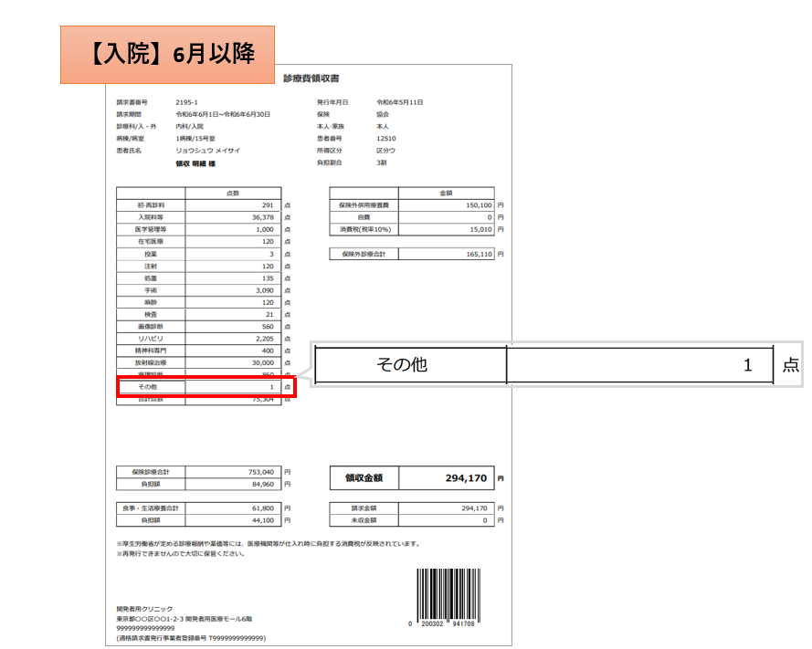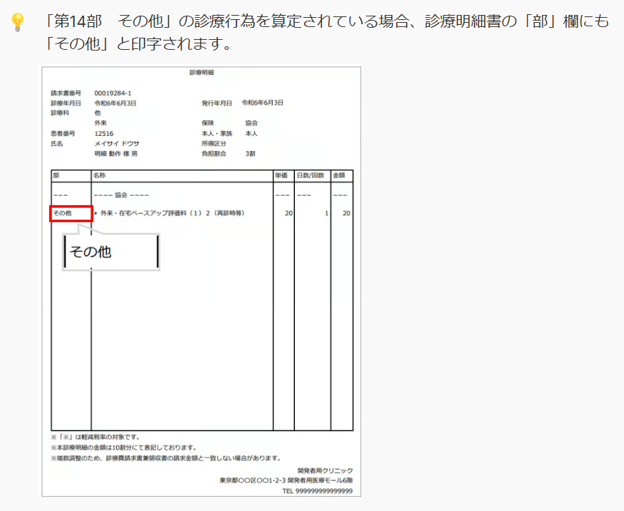 2024年6月診療分以降、請求書、領収書に「その他」欄が追加されるよう対応を行いました。