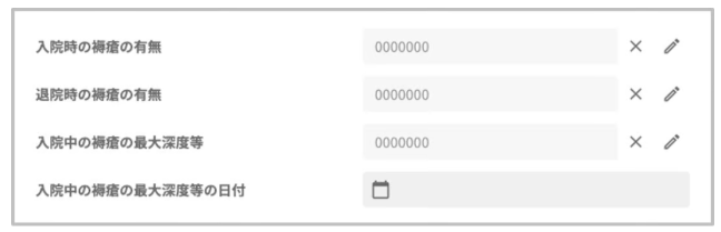 入院中の褥瘡の最大深度等の日付 | 未入力 |