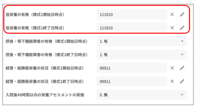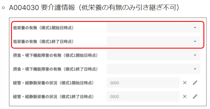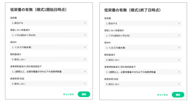 「低栄養の有無(様式1開始日時点)」「低栄養の有無(様式1終了日時点)」について、GLIM基準による入力に変更