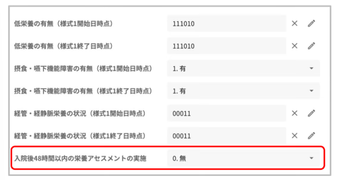 ・親様式に「入院後48時間以内の栄養アセスメントの実施」を追加