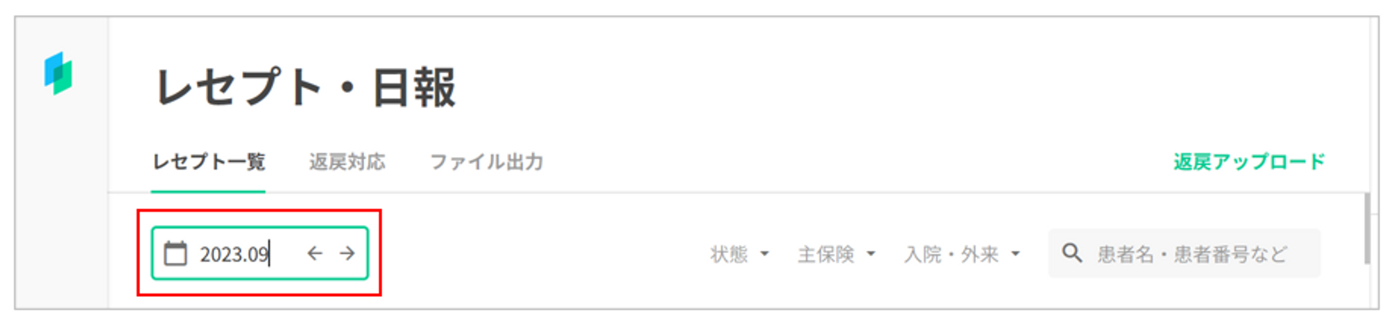 例)2023年8月診療分レセプトを保留とする場合、「2023.9」を指定