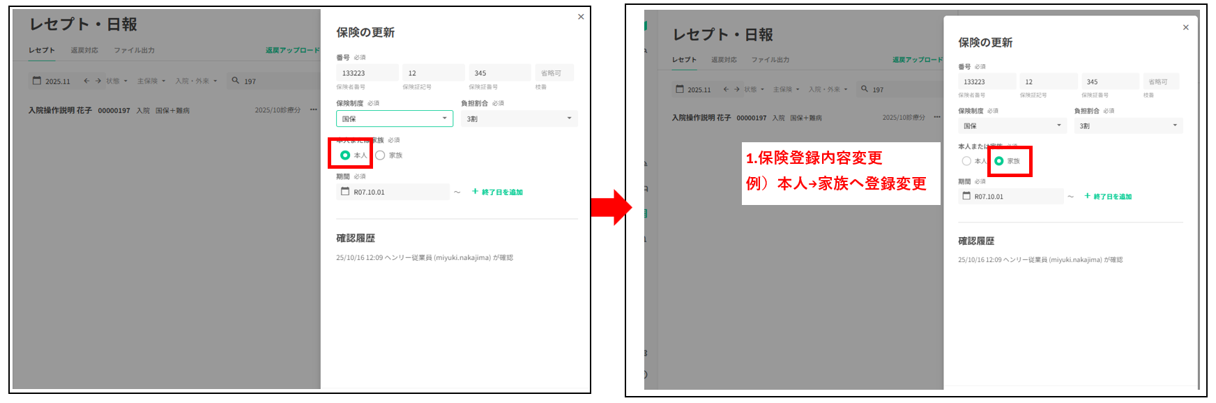 具体例:請求確定後に保険証の登録内容誤りに気づき訂正した場合